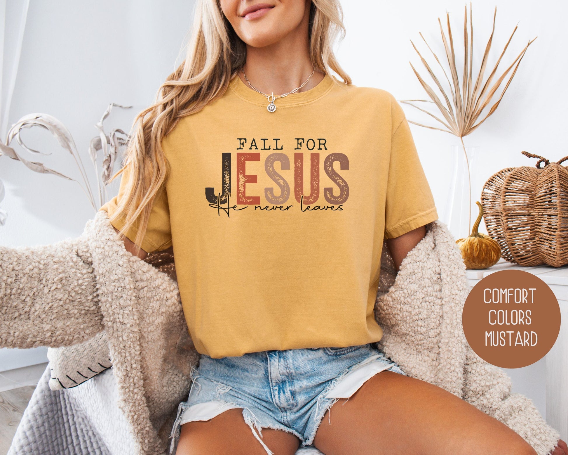 Fall for Jesus He Never Leaves Comfort Colors Shirt